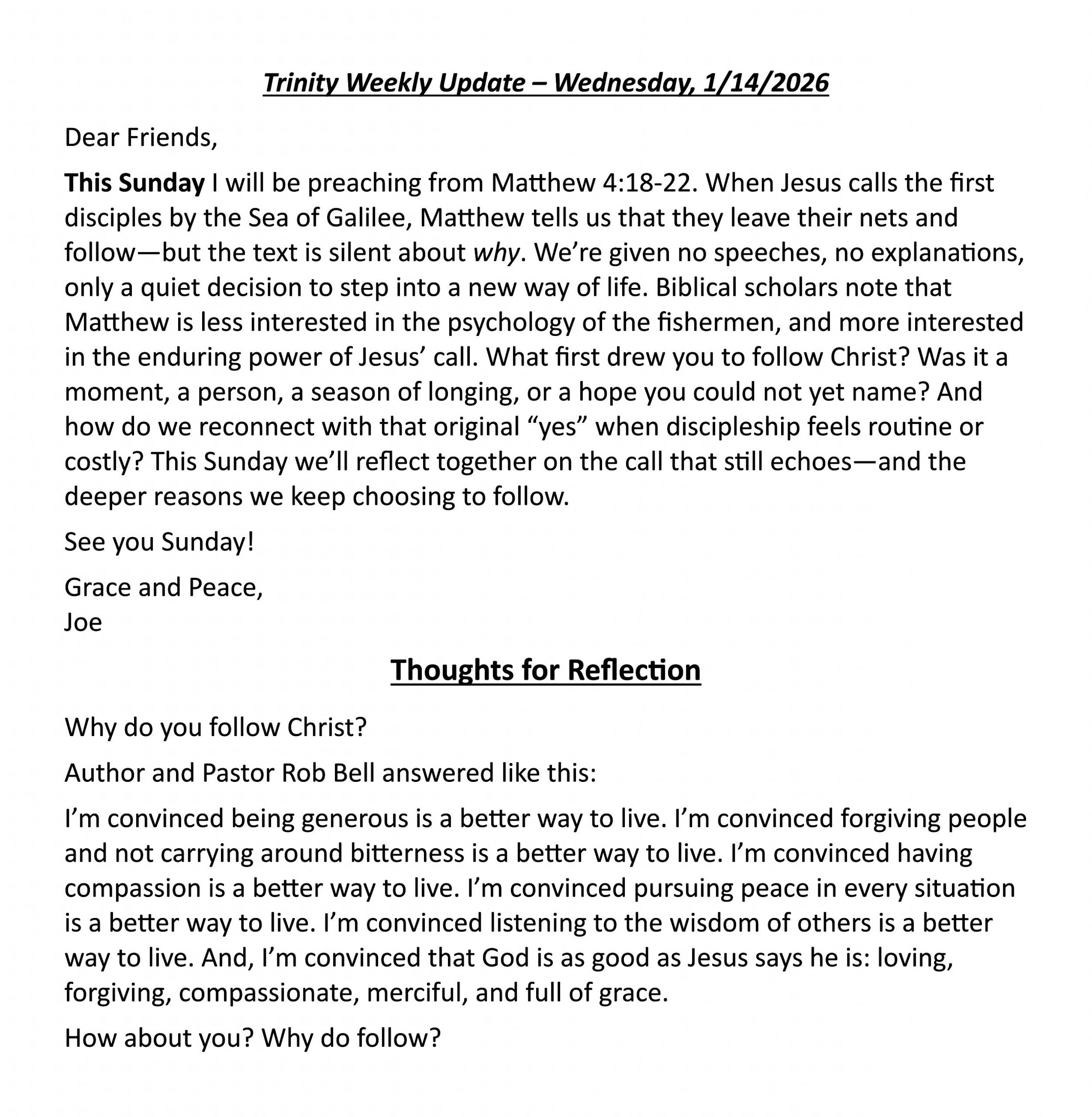 Pastor Joe's Weekly Update!